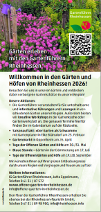 Die Vorbereitungen für den Gartenmarkt am 26. April 2026 in Oppenheim laufen bereits auf Hochtouren und auch die ersten Veranstaltungen in den Gärten finden schon wieder statt.