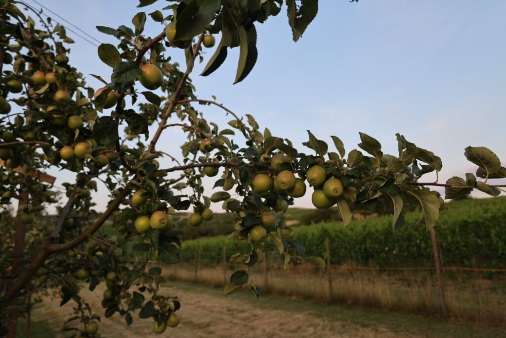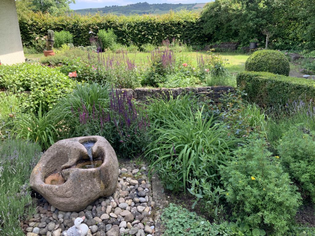 500 m² Naturwald, Streuobstwiese mit Hühnern, Hallenbepflanzung, Mauern aus Natursteinquadern