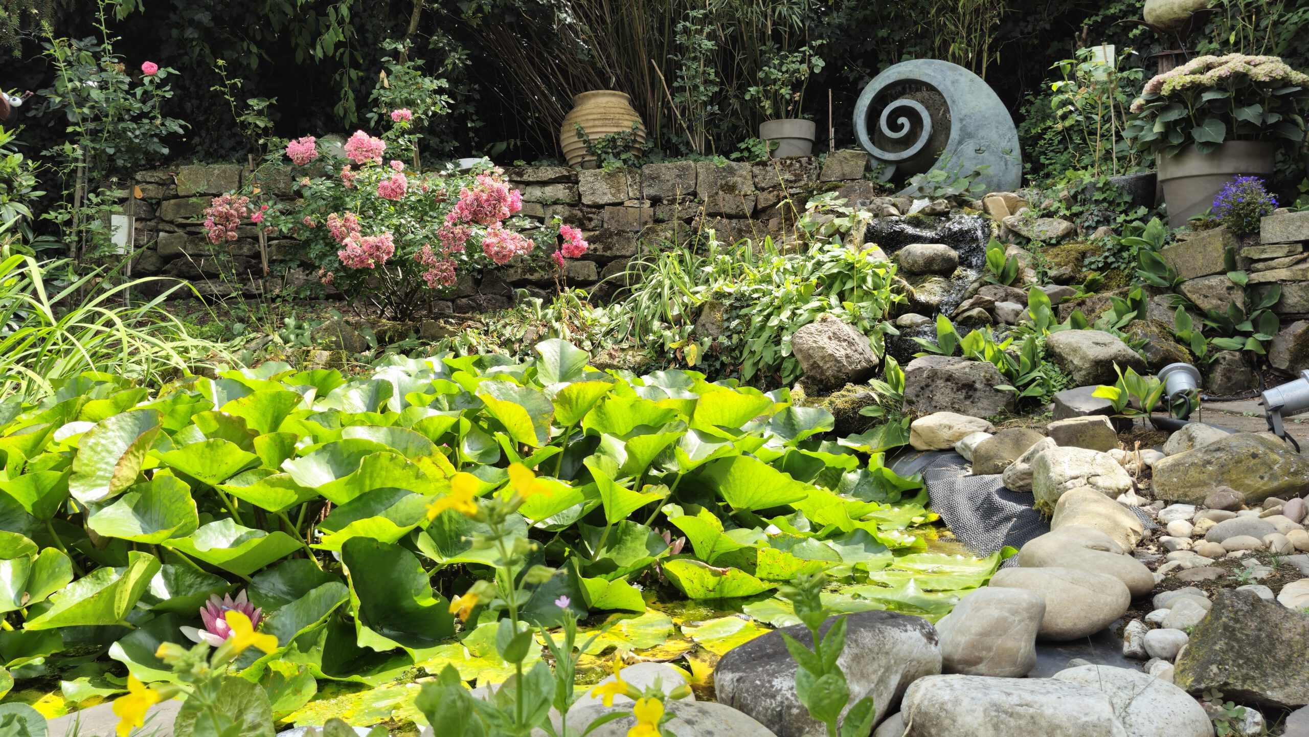Hausgarten mit Wellnessbereich und Bachlauf
